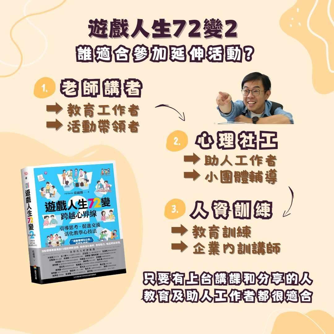 致力於教學活動設計、透過體驗活動引導反思,擅長引起動機、視覺隱喻、抓住學生注意力。《遊戲人生72變》一書作者。