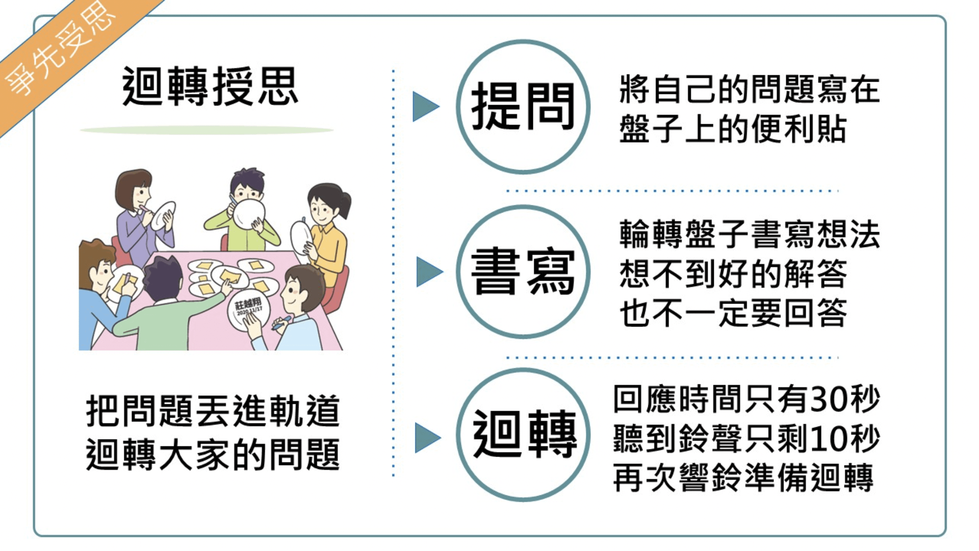 「設計好的框架,去挑選合適的問題,引導學員思考、由淺而深的分享」