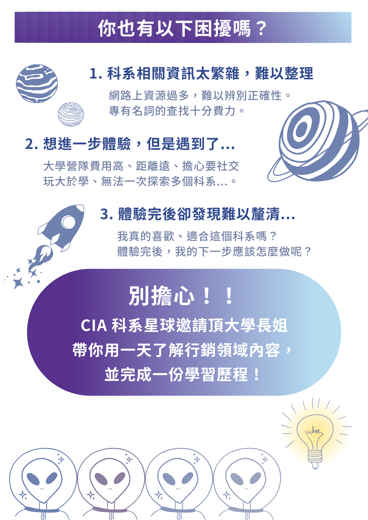 本營隊為獨立運營,並非由任何大學或其科系單位主辦、合作或認可。我們的宗旨是協助高中生探索不同學科的興趣與潛力,以便更好地規劃其學術和職業道路。本營隊的參與與否,與大學錄取無任何直接或間接關聯,亦不影響任何大學的入學決策。