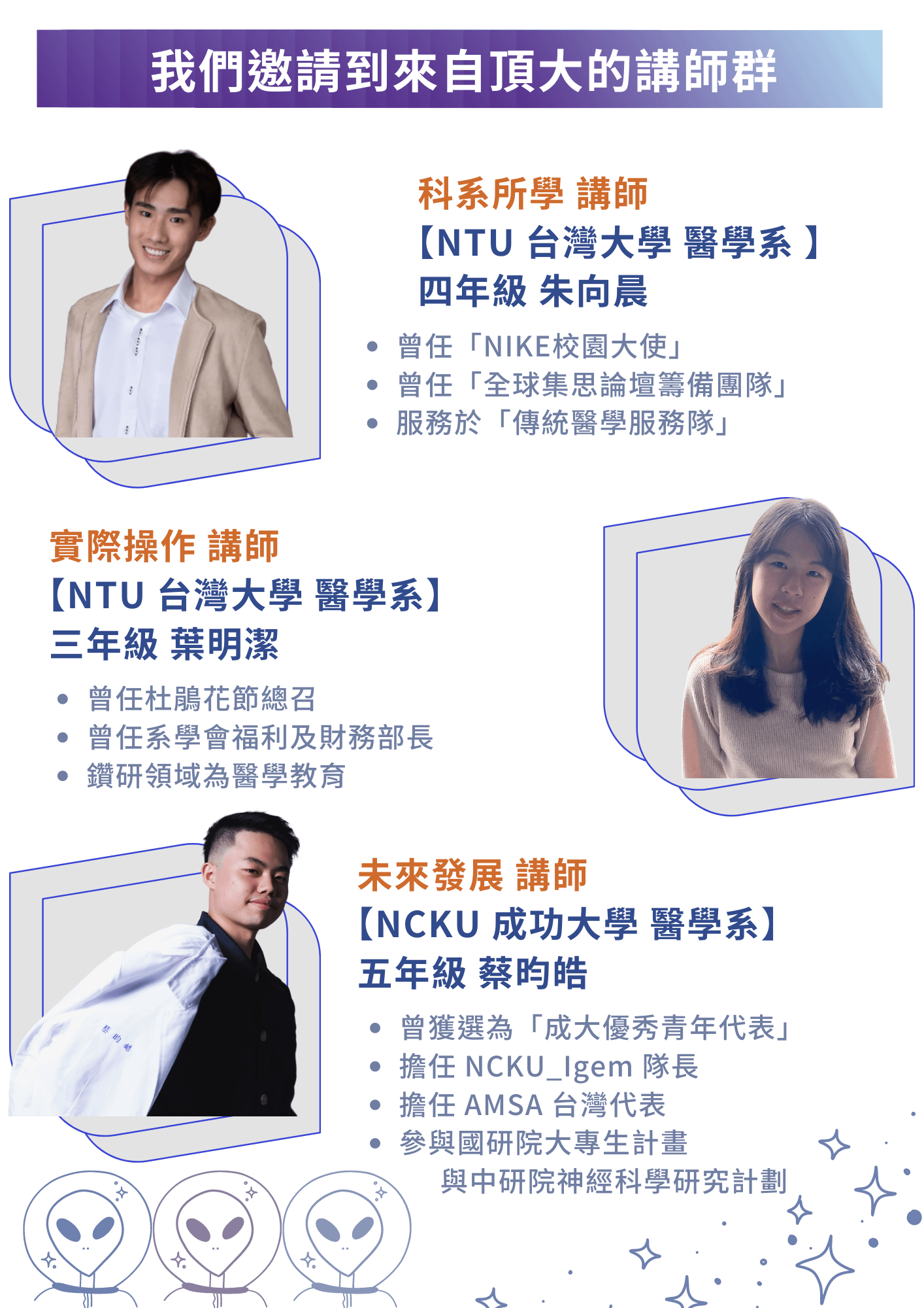 本營隊為獨立運營,並非由任何大學或其科系單位主辦、合作或認可。我們的宗旨是協助高中生探索不同學科的興趣與潛力,以便更好地規劃其學術和職業道路。本營隊的參與與否,與大學錄取無任何直接或間接關聯,亦不影響任何大學的入學決策。