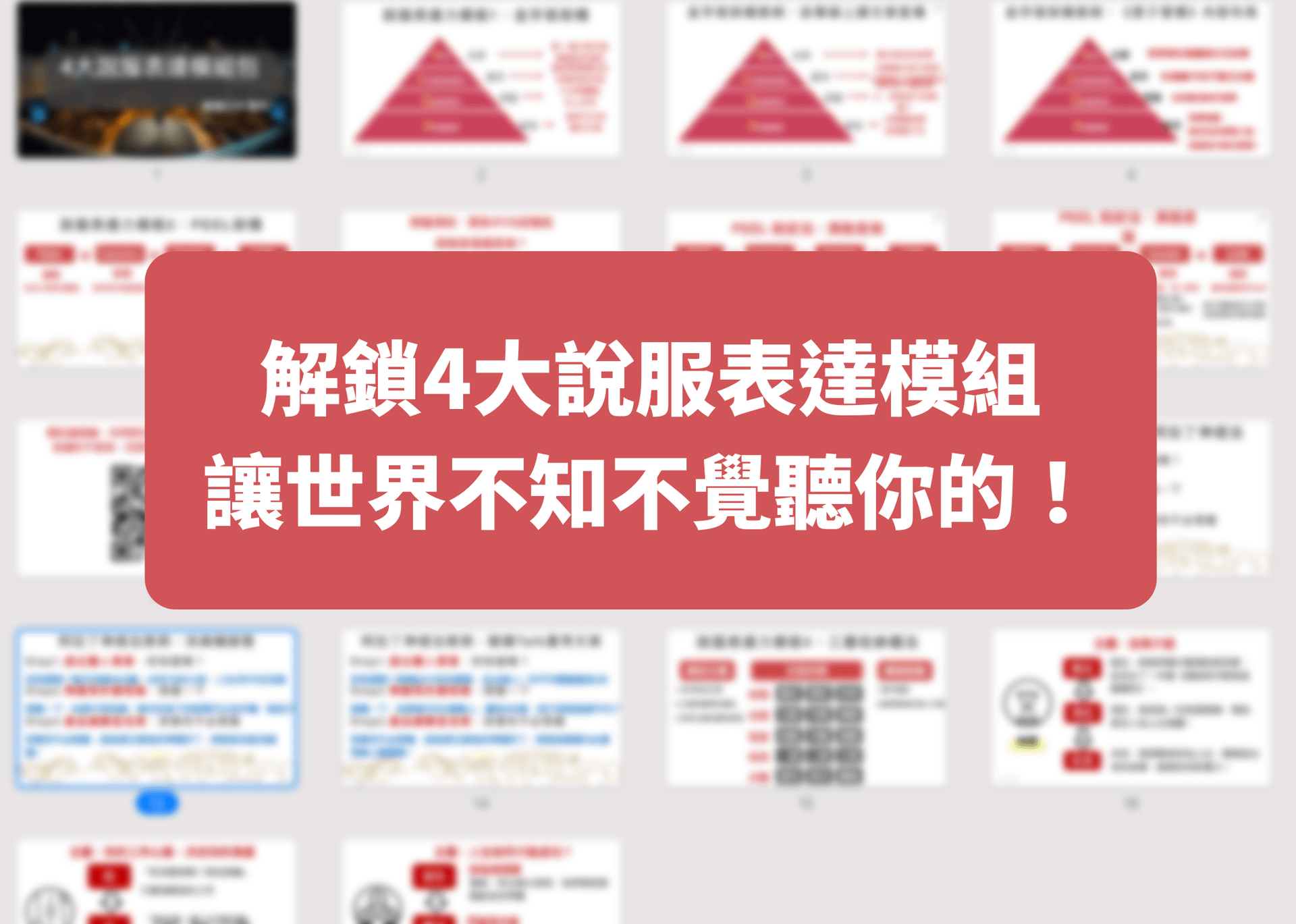 其實最核心的問題是:「你缺乏一套有系統的說服表達架構,導致每次表達不知所措!」